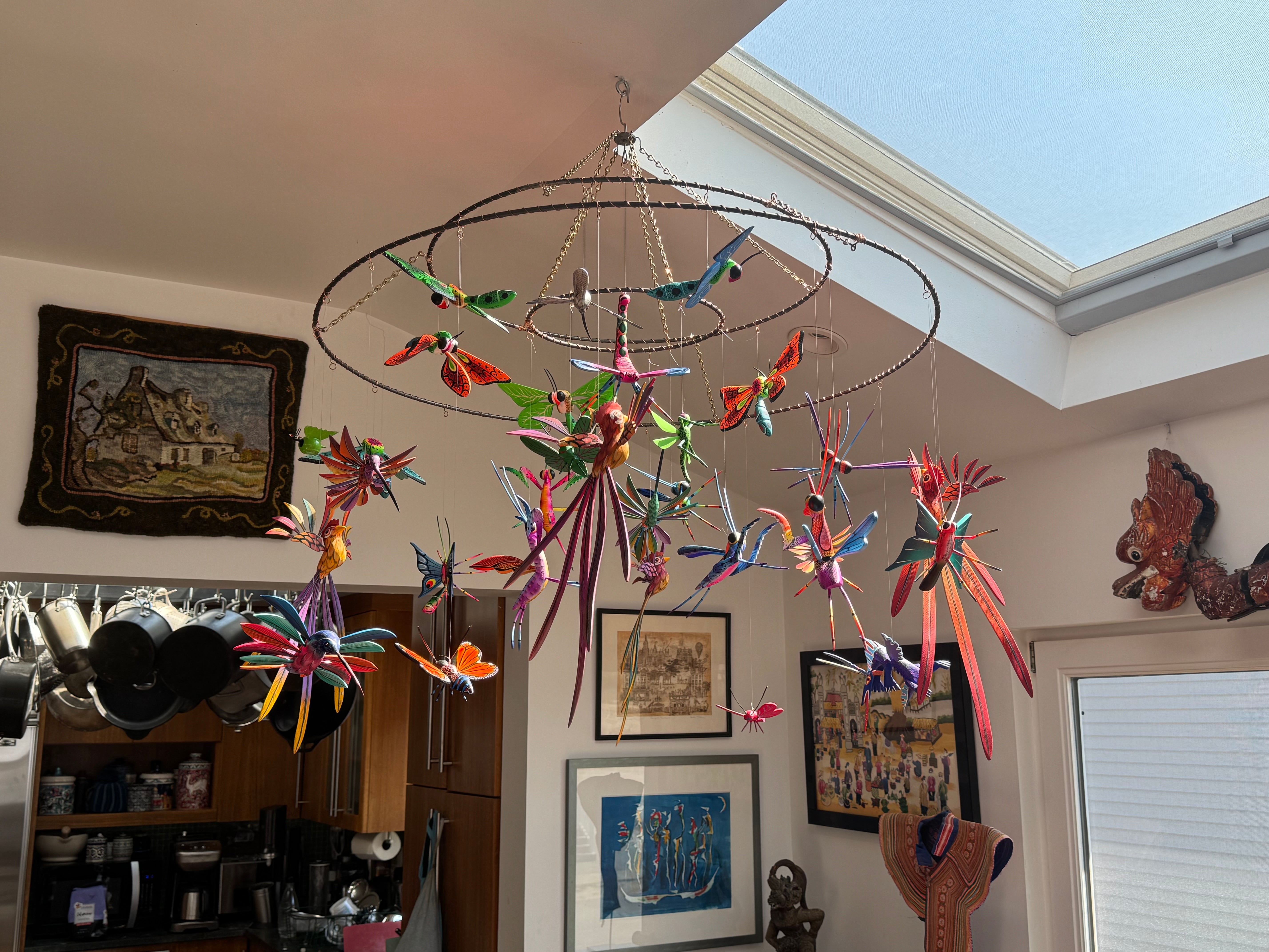 Measures 36 x 36 x 40. Constructed with custom painted Mexican alebrije sculptures