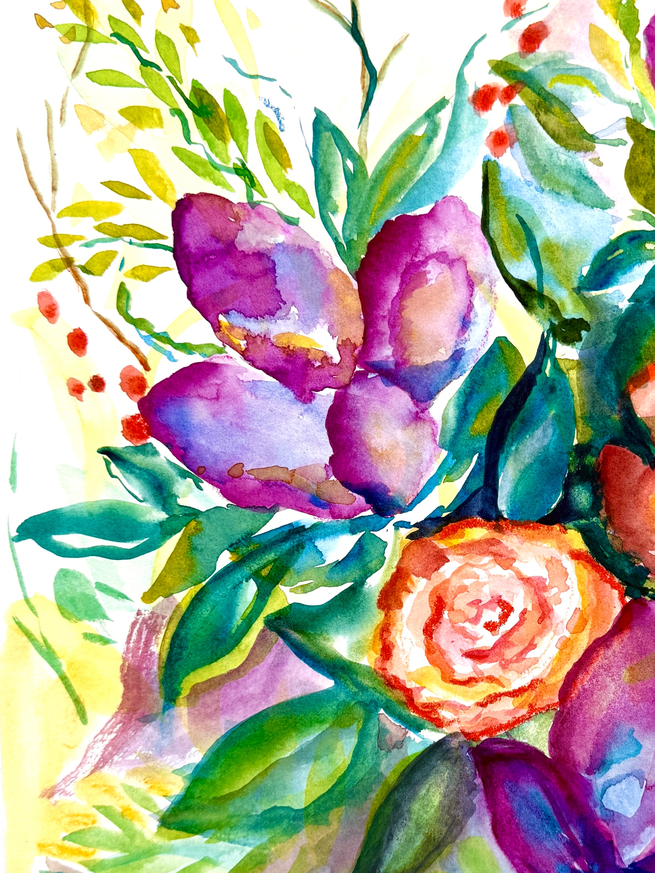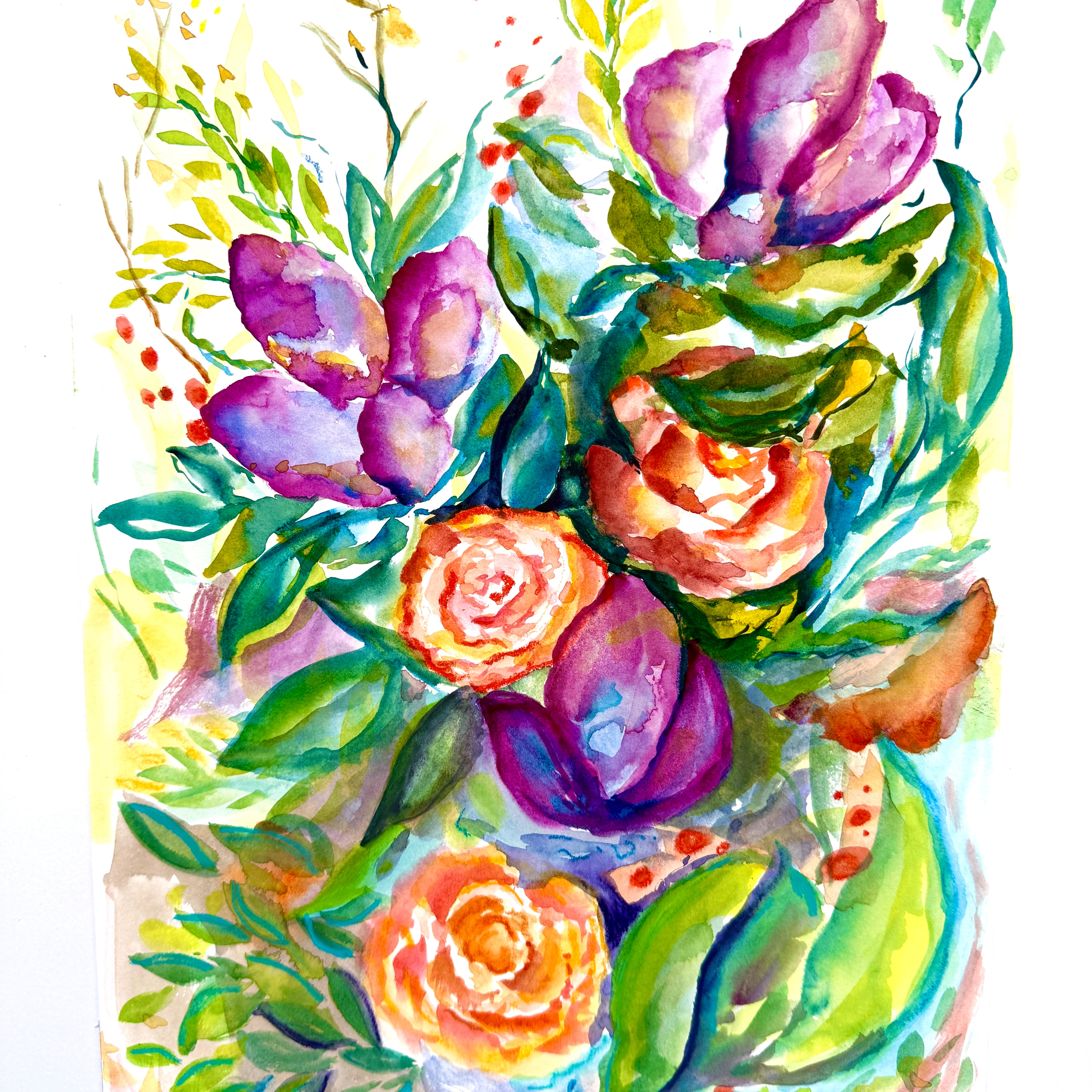 Where the Garden Sang is an original watercolor painting inspired by the spontaneous beauty of a flourishing garden. Loose washes and expressive marks create a vibrant botanical composition that celebrates color, movement, and the quiet music of nature. This contemporary floral artwork brings luminous color and modern botanical energy to any interior space.